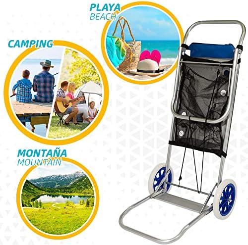 Usos carrito: adecuado para transportar sillas, base para nevera, sombrilla, rejilla para toallas y bolsito para objetos personales