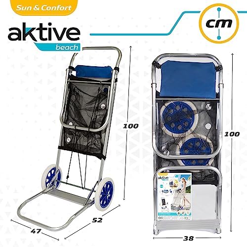 Con 2 ruedas grandes de plástico de Ø21.5 cm, eje central y tuerca de seguridad que permite transportar multitud de accesorios de playa sin apenas cargar peso